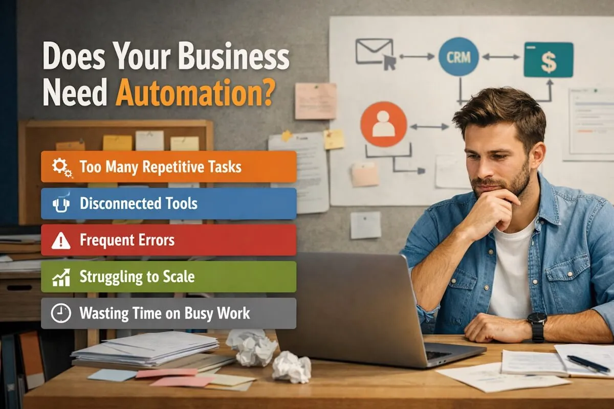 If your business is dealing with repetitive tasks, disconnected tools, frequent errors, scaling issues, or too much busy work, the signs are pretty clear.